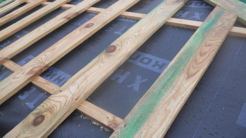 - наколотить контробрешенку толщиной 40 мм для создания вентзазора между мембраной и профнастилом