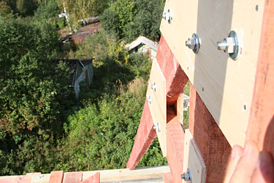 Немного не понял вот это место, но думаю соединение из 100 уголка там было бы более к месту. Раскажите как там собрано. Просто в торец бруса?,
