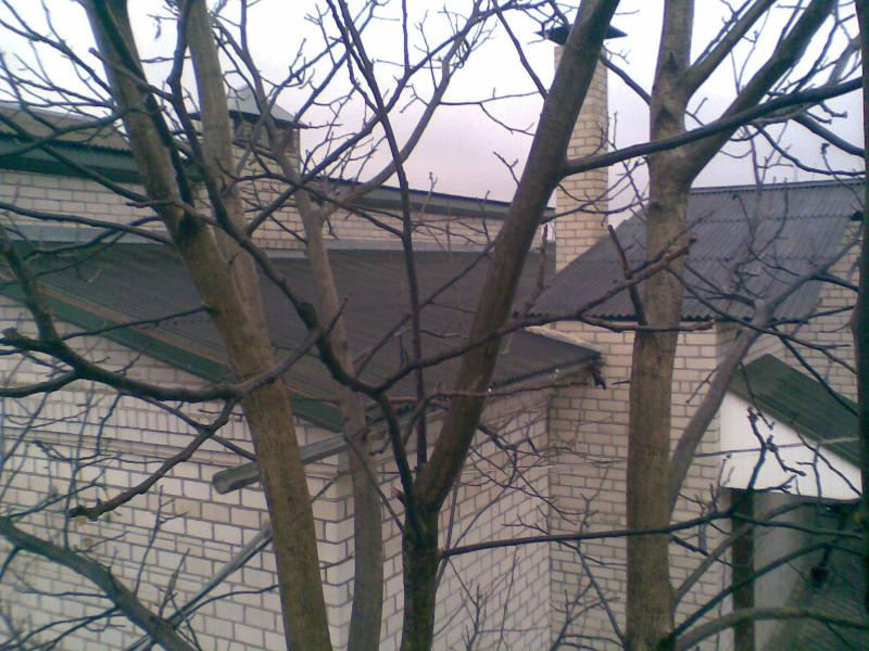 Вот. Кровле 12 лет. Это "гутанит". Был когда-то зеленый. На крышу вылезти побоялся. Гутанит рассыпается в труху.