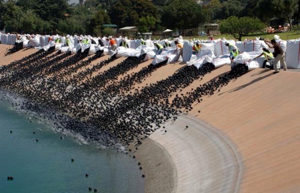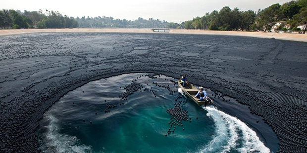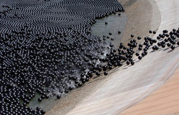 Для борьбы с этим явлением было решено высыпать на поверхность воды 400 тысяч черных пластиковых шариков, которые будут поглощать ультрафиолетовое излучение.