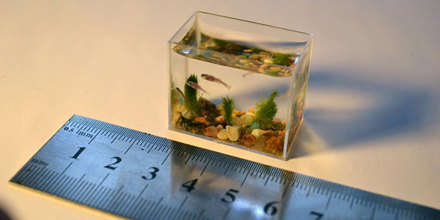 Объем микрорезервуара – 10 мл., что составляет 2 чайные ложки. Это абсолютный рекорд, ведь до этого размер самого маленького аквариума составлял 60 миллилитров.