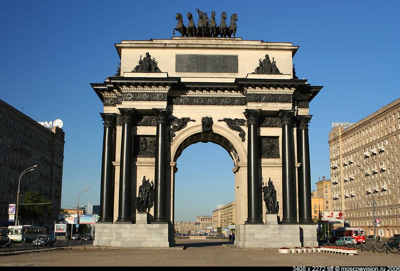 Кибовский, занимающий пост пост руководителя департамента культурного наследия, сообщал ранее, что реставрация будет окончена к началу осени текущего года. Официально памятник будет открыт восьмого сентября. В этот день отмечается годовщина сражения под Бородино. В этом году в российской столице запланировано огромное количество мероприятий, которые посвящены празднованию этого юбилея. На протяжение всего года жители города могут посещать запланированные научные конференции и круглые столы, главная задача которых заключается в исследовании событий, случившихся в 1812 – 1814 годах. Замена кровли обязательна Кибовский на встрече с журналистами отметил, что арке необходима полная замена кровли и очистка белокаменной поверхности. Чиновник также добавил, что процесс реставрации будет произведен и над карнизами арки, ее барельефами. При этом всем строителям необходимо соблюдать жесткие сроки. Чтобы успеть закончить все работы, властями города привлечены огромные силы реставраторов. Из истории Триумфальной арки Первая Триумфальная арка была построена в 1814 году. Материалом для ее изготовления послужило дерево. Предназначалась арка для торжественного въезда в столицу русских войск, которые должны были вернуться из Европы с победой в войне с Наполеоном. Дерево – материал очень непрочный, и к 1826 году Триумфальная арка находилась в обветшалом состоянии. После вхождения на престол Николай Первый решил построить белокаменную Триумфальную арку недалеко от Тверской заставы, которая располагается на въезде в Москву. Руководил строительством в 1829 – 1834 годах Осип Бове, который на тот момент был главным московским архитектором. Незадолго до официального открытия автор проекта умер. Образцом для московской Триумфальной арки послужили аналогичные постройки древних римлян. Для создания скульптур был использован чугун. Отлиты эти скульптуры были по некой уникальной технологии. До сих пор даже не удалось узнать ее секрет. В 1936 году строителям пришлось разобрать арку, так как она мешала перепланировке площади Белорусского вокзала. На новом месте памятник был восстановлен только в 1962-1968 годах. Установили Триумфальную арку у Поклонной горы. |