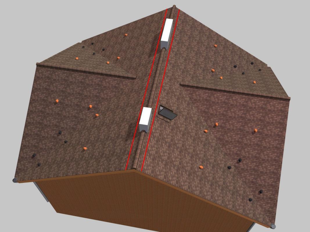 С одной стороны,вроде бы спорный вариант с притоком воздуха через аэраторы,расположенные вдоль линии ендовы,их ведь реально снегом завалит,с другой-те же немцы именно так и делают в подобных случаях,да и других вариантов немного.Карнизы совсем короткие,площади воздухозабора только через них да саму ендову,боюсь,не хватит.Воздухозабор сбоку,под фронтонной планкой-тоже так себе надежда,воздух вбок плохо ходит,больше вверх,до ендовы не доберется,там будет застойная зона.Мне кажется-выжать максимум из имеющихся карнизов,разрывы в контре в "слепой" зоне,и аэраторы на приток вдоль оси ендовы,для усиления,пусть даже и не круглогодичного.Возможно,лучше даже все три-на вход (верхний желтый тоже становится черным.