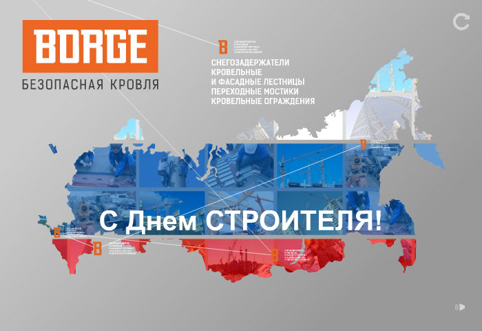 Коллеги, сердечно поздравляем Вас с профессиональным праздником Днем строителя! Интересных вам объектов, платежеспособных заказчиков и безопасных кровель! Всегда Ваши команда "Борге"