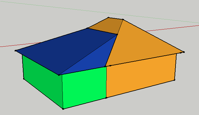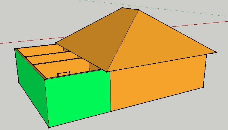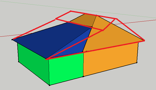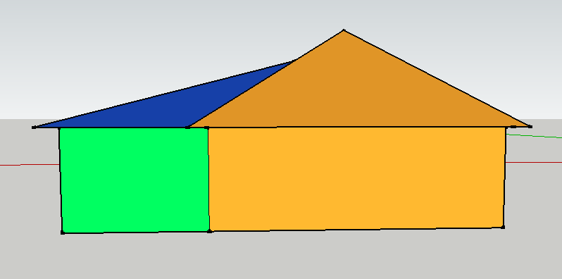 Всем доброго дня. в общем имеется дом с вальмовой кровлей(желтенький), будет пристроена часть из бруса 150/150(зеленая)размеры 4м/9м. и нужно новую крышу односкатную(синяя), но проблема в том .что новую кровлю нужно сделать сразу, а не через год когда пристройка(зеленая) подсохнет и подсядет. Что посоветуете. Проекта как обычно нет.