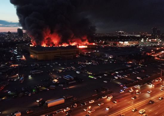 Минувшим вечером в торговом центре "Синдика", расположенном на МКАД, в столичном районе Строгино, вспыхнул сильный пожар.