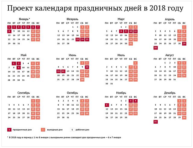 На основании проекта Минтруда правительство утвердило график выходных дней в 2018 году. Россияне смогут отдохнуть десять дней на новогодние праздники, а также четыре дня в марте и мае