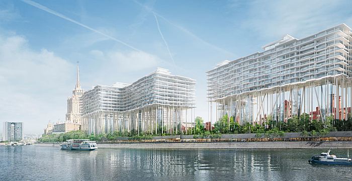 В столице представили проект застройки территории Бадаевского пивоваренного завода на набережной Тараса Шевченко. Новые здания планируется возвести над старыми цехами завода — на 35-метровых колоннах. Для разработки концепции инвестор проекта компания Capital Group привлекла швейцарское архитектурное бюро Herzog & de Meuron, лауреата Притцкеровской премии.