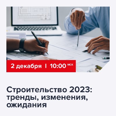 2 декабря 2022 г. с 10:00 до 14:00 (Мск) компания Технониколь совместно с ведущими экспертами «ДомКлик» от «Сбера», «INFOLine-Аналитика», «Ассоциация деревянного домостроения» проведет бесплатную онлайн-конференцию «Строительство 2023: тренды, изменения, ожидания».