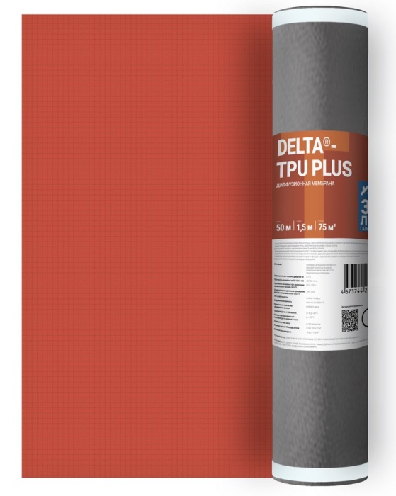 • DELTA®-TPU PLUS применяется на утеплённых / холодных крышах и стенах. Благодаря двум встроенным клеящим полосам на обратной стороне мембраны, она эффективно и экономично монтируется на вальмовых и шатровых крышах