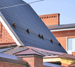 Снегозадерживающие конструкции не обязательно должны устанавливаться по всему периметру крыши. Достаточно обезопасить только проблемные участки. Нужно также заметить, что такая, казалось бы, прозаическая вещь, как снегозадержатель, совершенно не портит внешний вид Вашего дома, а прекрасно вплетается в его архитектурную канву.