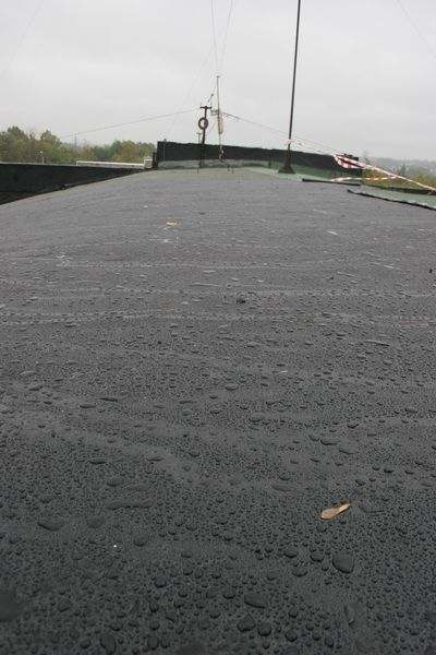 5) "Несомненным плюсом данной технологии явилось отсутствие дорогостоящей утилизации старого рубероида. Все необходимые материалы были переработаны из уже имеющегося сырья. Не требовалась замена утеплителся, так как были установлены аэраторы. Не было необходимости ремонтировать разрушившуюся стяжку."