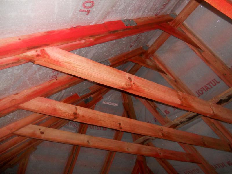 2. Контрбруса нет. Плохо! 3. На МЧ в коньке выход воздуха как организован? Планка коньковая круглая или плоская в виде уголка? 4. Что за пленка? ВЫВОД: Судя по фото - проблема вентиляции подкровельного пространства. Движения воздуха (если оно вообще есть) не происходит, а если и происходит то недостаточное, т.к. присутствуют лишь перетоки между обрешеткой и металлочерепицей - а этого явно недостаточно. Второй вариант - из-за образования конденсата на внутренней стороне металла, пленка пропускает влагу - либо не качественная, либо имеет нарушение в слое изоляции (механические или производственные). ПС. Образование конденсата в осенне-зимний и зимне-весенний период - нормальное явления между металлочерепицей и пленкой. На моих фото тоже холодный чердак. Образование конденсата происходит из-за разницы температур внутри конструкции и улицы. Не будем трогать эту сложную и скучную тему. |