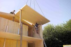 Строительство завода KLH стартует в Брянской области (Почепский район) уже в этом году, а выпуск первой партии высокотехнологичных материалов начнётся через 14 месяцев. Уникальность продукта состоит в том, что цена на квартиры, построенные по австрийским технологиям, будет ниже обычной примерно не треть. Технология, спроектированная специалистами KLH, позволит выпускать крупногабаритные плиты из дерева, длина и высота которых достигает 12-ти и 3-х метров соответственно. Они будут применяться для строительства высокоэтажных домов и заменят железобетонные панели. Компания KLH уже успешно реализовала в России ряд проектов. В 2008 году в Подмосковье был возведён дом из деревянных клееных панелей, который стал первым России проектом подобного рода. Строители возвели здание всего за 3(!) дня. Затем фирма победила в конкурсе на возведение коттеджного посёлка на горнолыжном курорте "Горная карусель" в Красной поляне. |