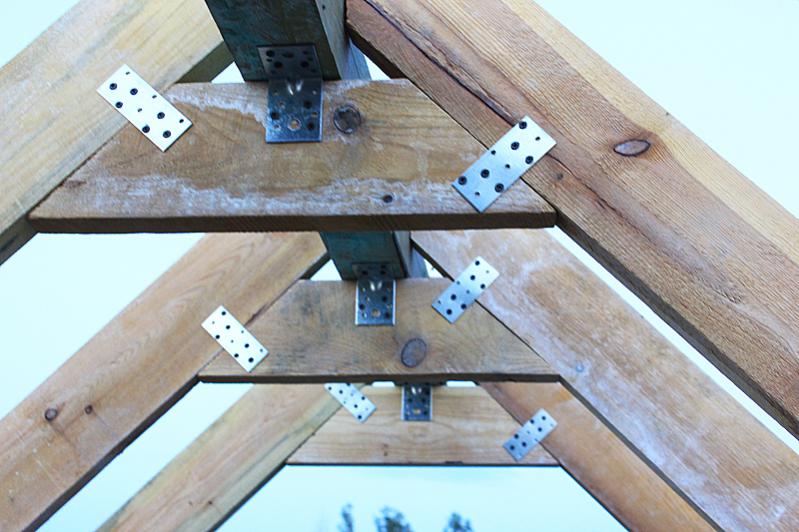 Металлические накладки вроде недорогие по сравнению со стоимостью остальных материалов, кровельные саморезы загонять на мой взгляд удобнее и проще шпилек и гвоздей. Значит буду делать с ними.