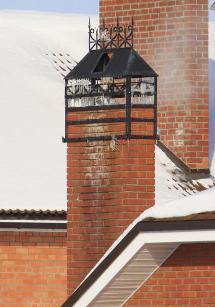 Иногда ещё поступают так (ФОТО) .....Надо сказать помогает...Белёсый след на трубе - это сосуля висела, пока дыру не прорезали.... От выхлопа до котла всего 5 метров, котёл в гараже и отапливает гараж(13х6м), мансарду над гаражём и двухэтажный дом 14х12м. То бишь котёл мощный.