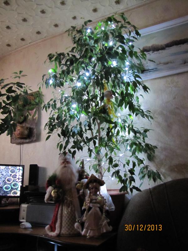 Что-то в этом году слабо чувствуется приближение Нового года... Или это мы с елочкой запаздываем... Обычно 20-го уже ставим, а в этом году пока не получается. Завтра наряжу фикус... может поможет...