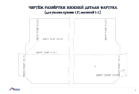 Альбом содержит развёртки частей фартука трубы, сделанные из металла и предназначенные для кровель с разным уклоном, в натуральном масштабе. Благодаря цветным иллюстрациям можно получить исчерпывающую картину о конструкции деталей и их месте на кровле. Шаблоны в виде развёрток помогают свети к минимуму время на подгонку отдельных деталей при сборке изделий и не допустить ошибок, возникающих в случае самостоятельного построения выкроек. Для создания шаблона нужно вырезать из бумаги изображение необходимой детали, обвести его и перенести на металл. Данный шаблон можно использовать в дальнейшем несколько раз. Развёртки предназначены для кровель с уклоном 50, 35, 25, 20 и 12 градусов. Они применяются для труб с различным диаметром. На чертеже есть линия разрыва, позволяющая раздвигать края развёртки до необходимых размеров при перенесении на металл. Цена одного альбома составляет 400 рублей. Для заказа направляйте заявку на почту Национального кровельного союза: secretary@roofers-union.ru, факс: +7 812 703 55 46. |