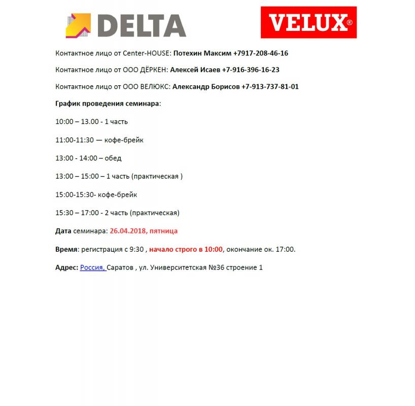 Следующий совместный семинар с VELUX будет 26 апреля в Саратове, и ещё один 22 мая в Москве.