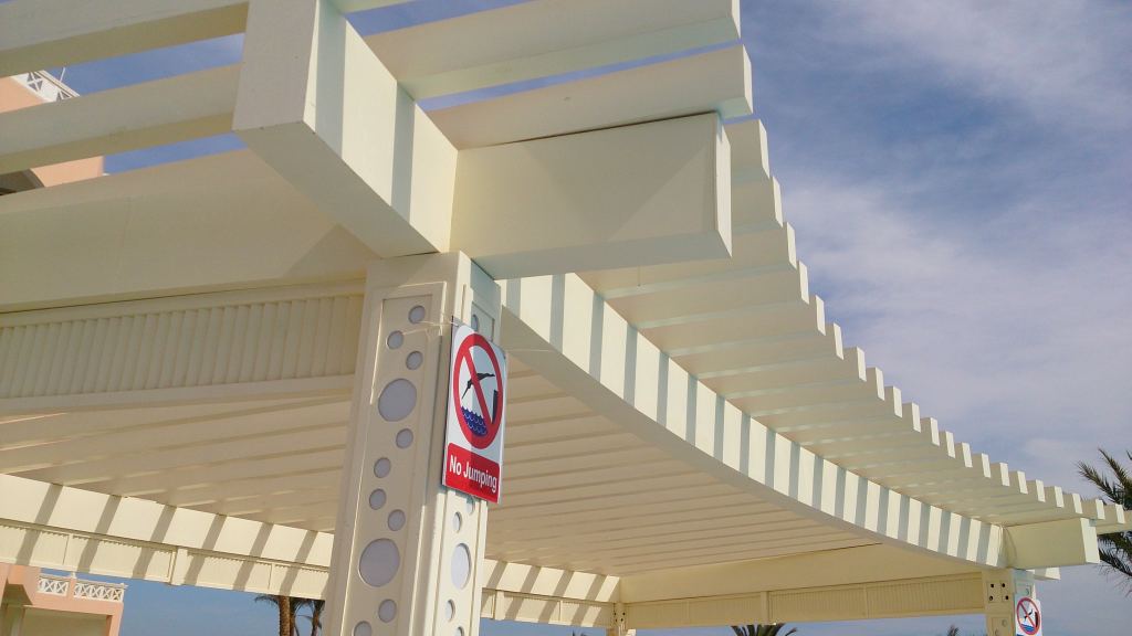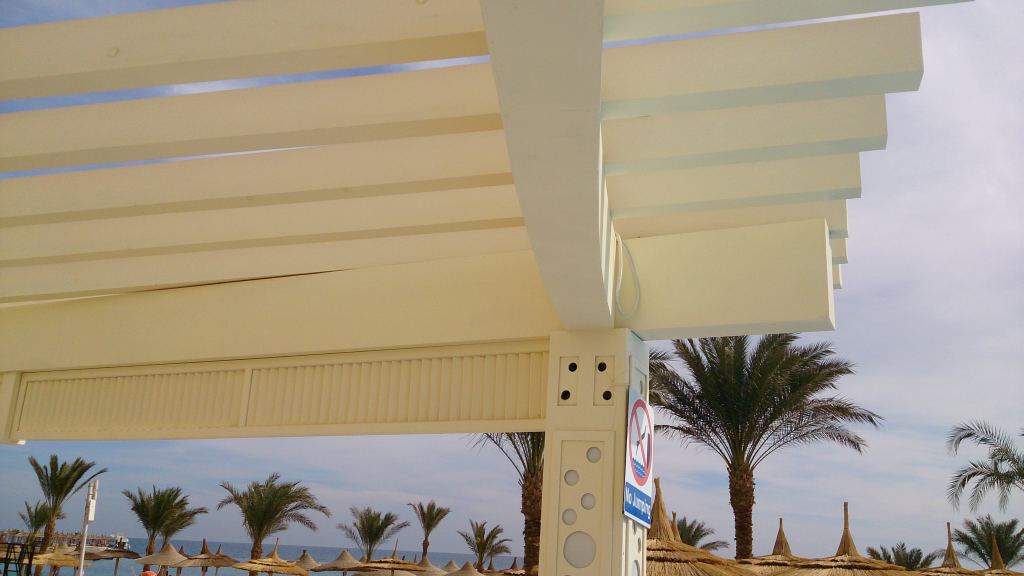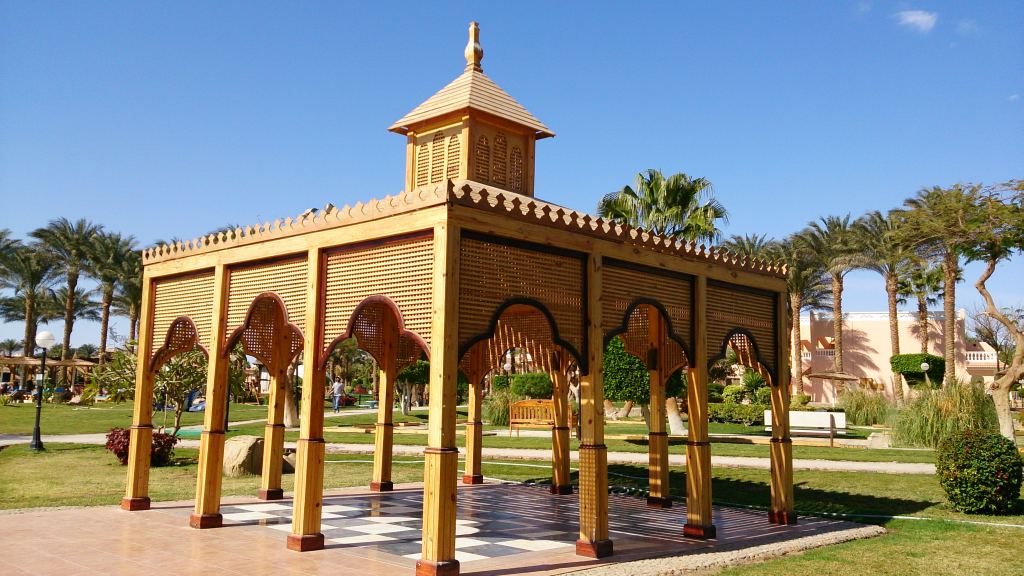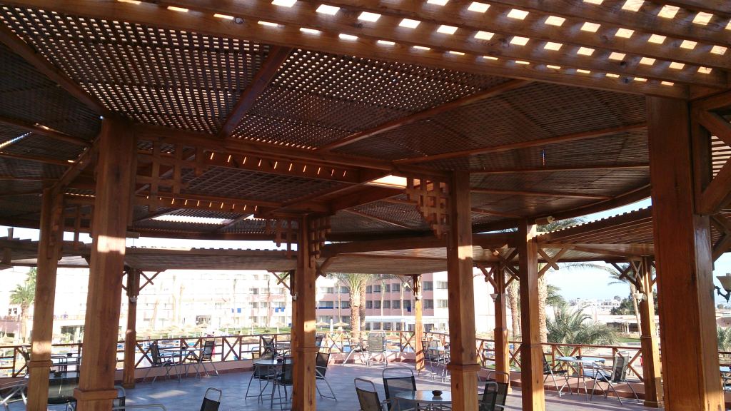 Там климат другой, я вначале сильно удивился, увидев крышу над похожей беседкой, крытую фанерой и множество домов вообще без крыш. Потом экскурсовод объяснил, что дожди бывают раз в три года и те дожди пыль прибить не способны.