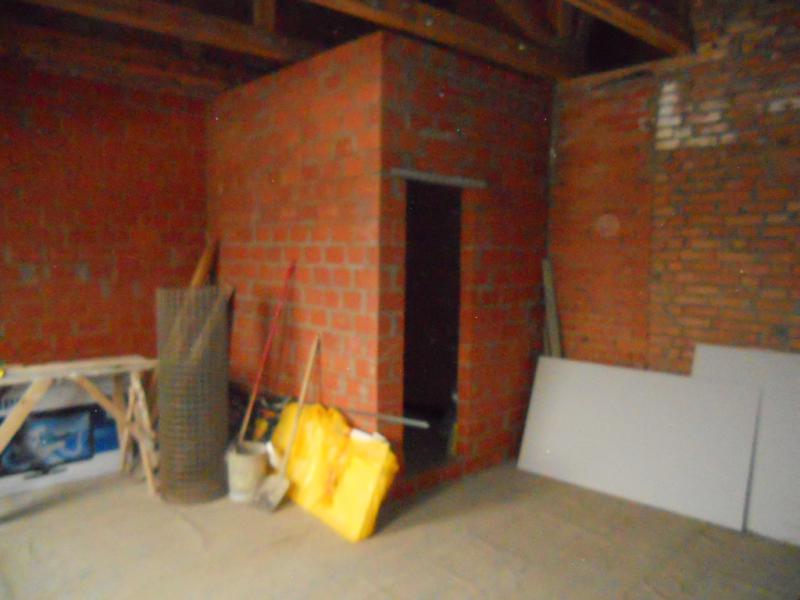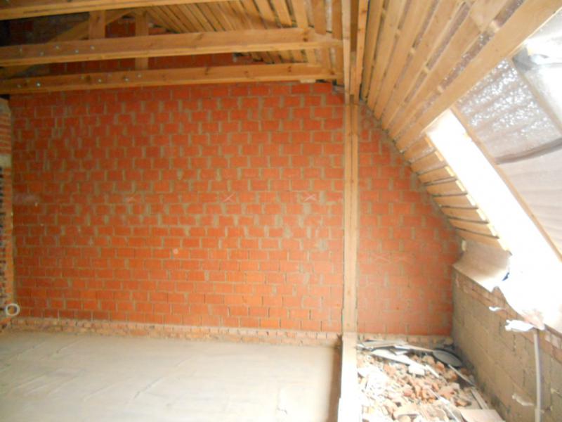 На переломе ската - прогон 6м. без стоек, и не понятно зачем было крайние опоры прогона замуровывать в кладку.