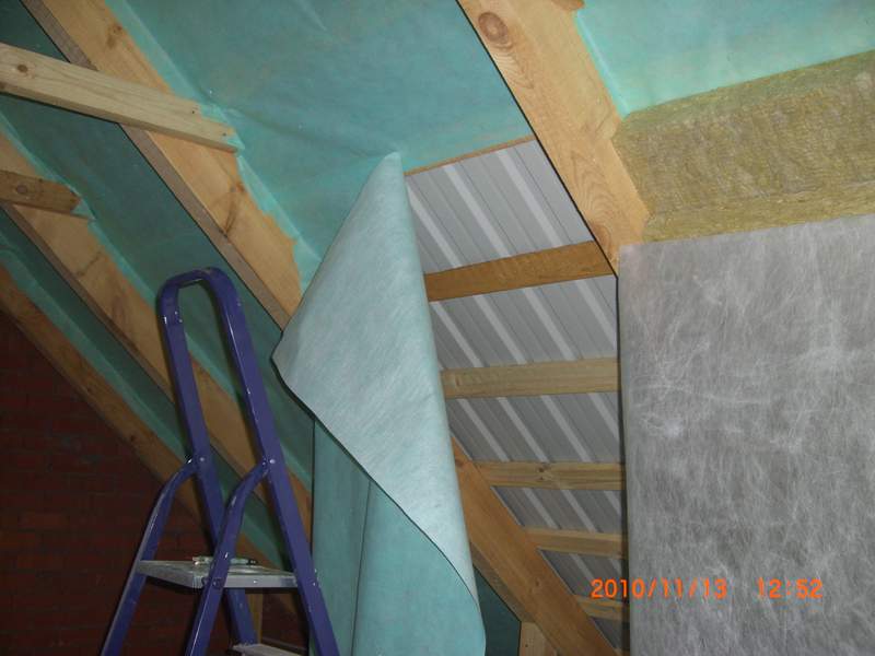 - укладывали утеплитель (роквул) двойным слоем, получилось толщина 200 мм.
