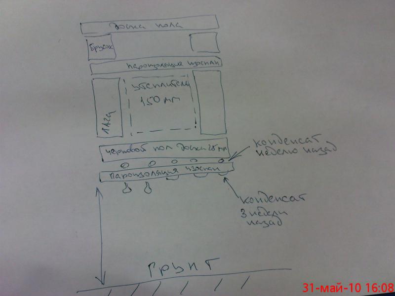 Залезал вчера на поверхности конденсата нет присмотрелся вода уже под изоспаном между изоспаном и черным полом пришлось отодрать всю пароизоляцию от черного пола все доски мокрые.