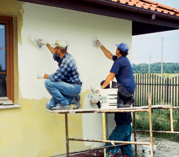 • гидроизоляция (защита стен от проникновения атмосферных осадков); • теплоизоляция (защита дома от холода зимой, от жары летом); • шумоизоляция (препятствие проникновению шума с улицы). Существуют основные виды фасадных систем, которые применяют в строительстве, и широко используют штукатурную отделку фасадов. Рассмотрим данную систему, ее преимущества и недостатки. Штукатурка — вид отделочной работы, задача которого создать ровную поверхности для следующего нанесения более тонких покрытий. Самыми распространенными материалами являются: известковый раствор, цементно-песчаный раствор, гипсовые смеси. Штукатурная отделка фасада является защитой наружных стен дома от вредных атмосферных влияний и чаще всего применяют цементно-песчаный раствор, который готовят на стройплощадке или используют сухие, фасованные в мешки, штукатурные смеси, с различными добавками промышленного производства. Цементно-песчаный раствор готовят из цемента и песка, и его стоимость, безусловно, дешевле. Качество штукатурного раствора зависит от соблюдения пропорций и правильного вымешивания раствора. Готовые сухие штукатурные смеси позволяют сэкономить время на приготовление раствора, не занимают много места на стройплощадке, от них меньше мусора, а также есть возможность применить штукатурные машины для механического нанесения штукатурного раствора. Отштукатуренный фасад затем покрывают акриловой фасадной краской. |