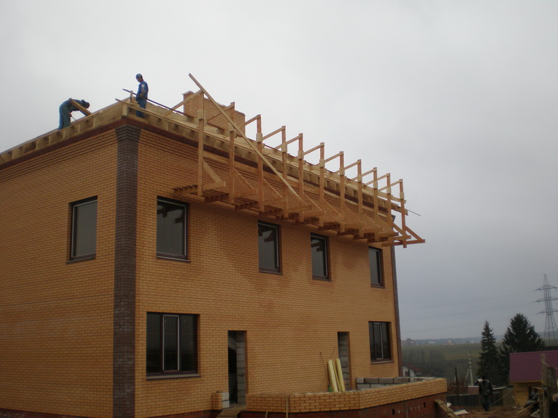 А уж каким способом кровеля решат устанавливать для себя леса - подвешивать (как на снимке выше), или ставить - это их дело.