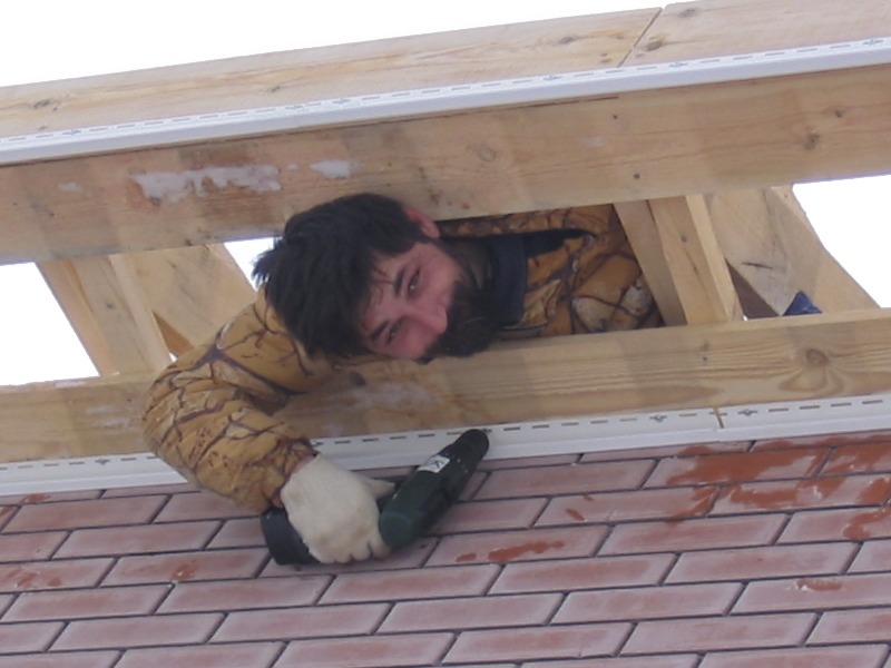 Фронтоны всегда подшиваем без лесов, но эта возможность закладывается при строительстве стропильной системы.