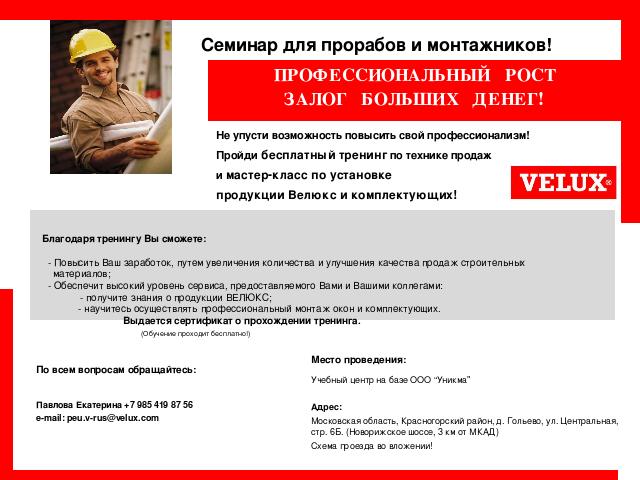 Re: Семинар VELUX для монтажников