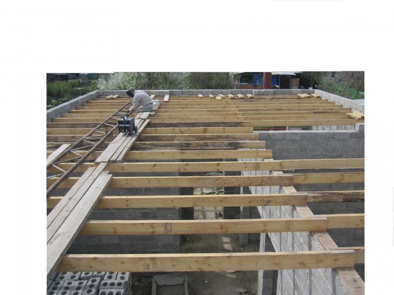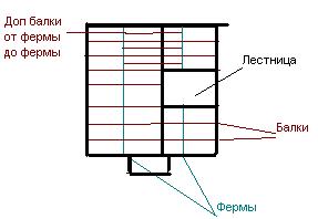 Ситуация следующая: Коробка 9,30м х 12,90 построен первый этаж. Возможности перекрыть плитами нет (проблема с подвозом плит и подьездом крана-манипулятора). Принял решение перекрыть лесом доска та же что и на стропилах сосна 5х15х600. Балки лежат на 60 см друг от друга по центрам. Крыша 2 скатаная с 2мя фронтонами в общем простая. ПО центральной оси дома будет мансарда шириной 3-3,5м сразу за боковыми стенами мансарды устанавливаю фермы, подтягиваю к ним балки и ложу дополнительные балки между основыми (см рисунок) получается шаг по балкам 30 см. Впоследствии доской 3йкой буду сшивать пол на мансарде.