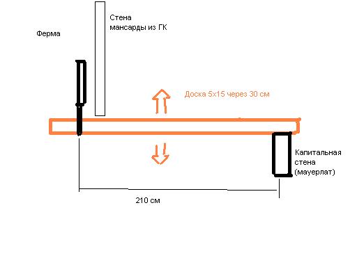 Сшить пол мансарды могу и 5кой а вот лаги изменить не могу, так как у нас даже 10х10 на заказ (весь лес привозной г.Ставрополь). Могу положить только чаще и сварить фермы с обоих сторон мансарды и притянуть балки. Выходя из положения делаю - ширина мансарды 350 см -лаги 15х5 шаг 30 см по осям. Длины лаг по опорным точкам 1я ферма- капитальная перегородка (мурлат) 210см, капиталка - 2я ферма 140см. От ферм до наружних стен помещений в подкровельном пространстве не будет (тех зона).