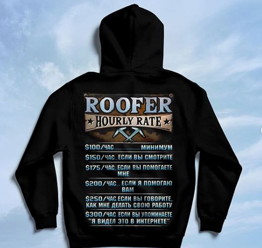 Прикольная спецовка для кровельщика. Обратите внимание на то, что написано на кофте.
