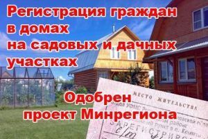 Ещё в середине лета Правительство РФ одобрило федеральный закон, разработанный Минрегионом России, который снимает ограничение на регистрацию граждан в домах, расположенных на дачных и садовых участках. Сейчас они считаются не «жилыми помещениями», а «жилыми строениями», невзирая на размер и особенности архитектуры. Разница терминов очень существенна, так как строения по закону непригодны для постоянного проживания и регистрации. На данный момент законопроект внесён в Госдуму и должен быть рассмотрен в осеннюю сессию.