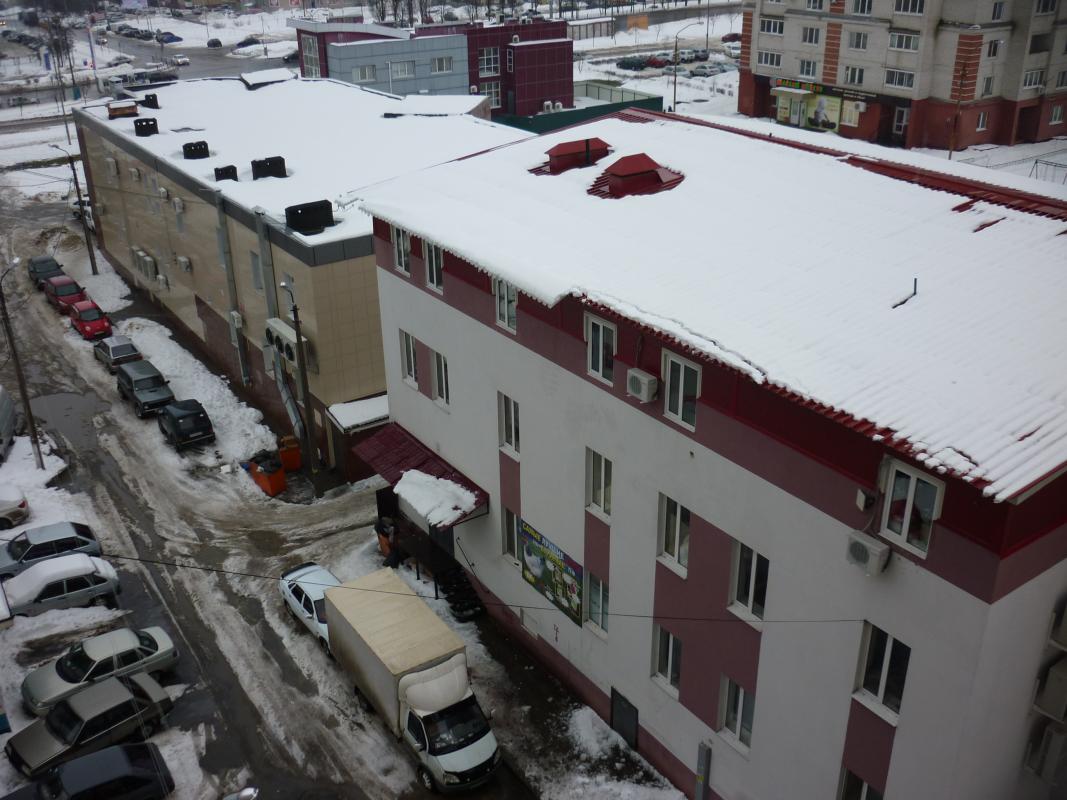 вот еще вид с седьмого этажа в нашем дворе... зимой сосульки висят метровые... а внизу и люди и машины... но пока несчастных случаев не было...