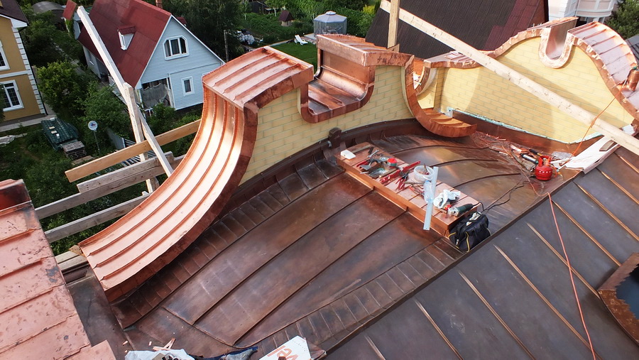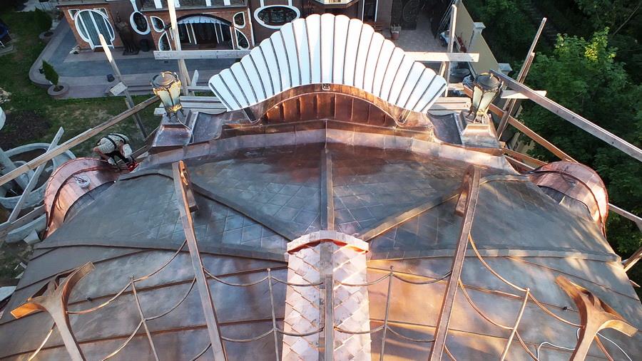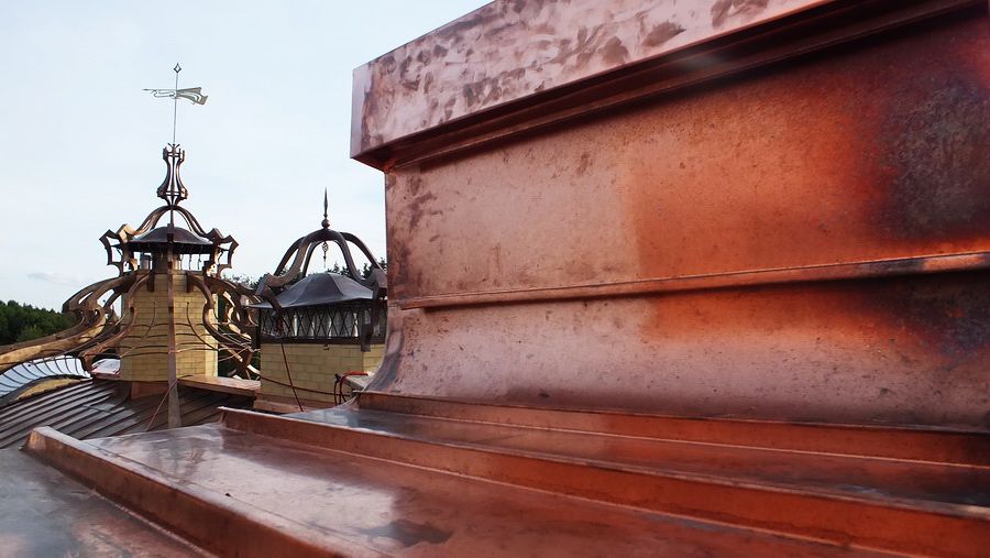 Завершаем проект Цитадель в рублевских землях Московской губернии! Поставка красной меди превысила отметку 1000 м2. Использовали патину и латунь. Много пайки. Чеканка и многого другого. Смотрим и наслаждаемся