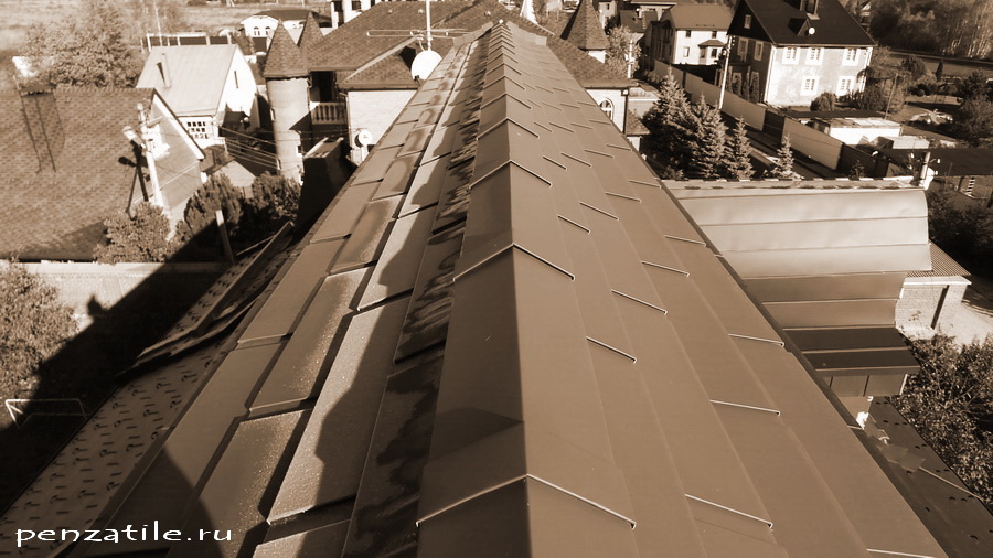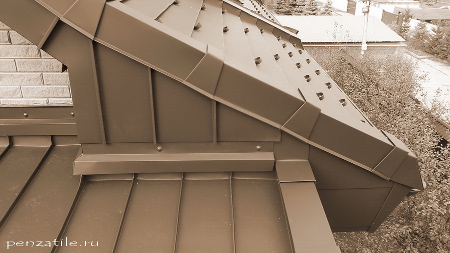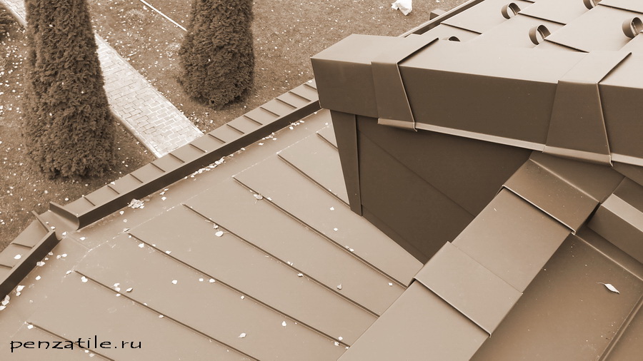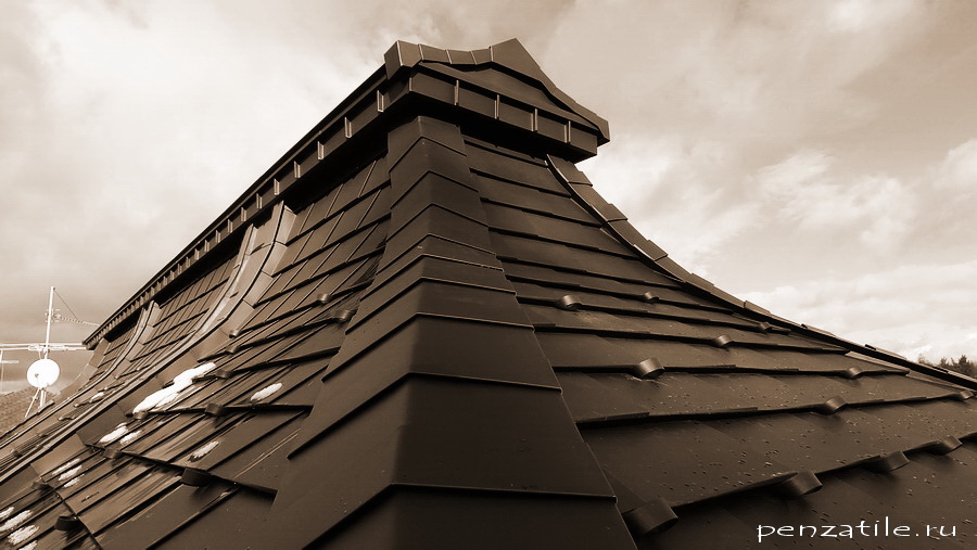 В январе 2016 завершили проект Усадьба (Московская губерния). Алюминий Impol (Сербия) 0.7 мм в двух цветах. Много чешуи было и немного фальца. Швейцарские колена сегментные вогнутые (радиусные) медные с покраской.
