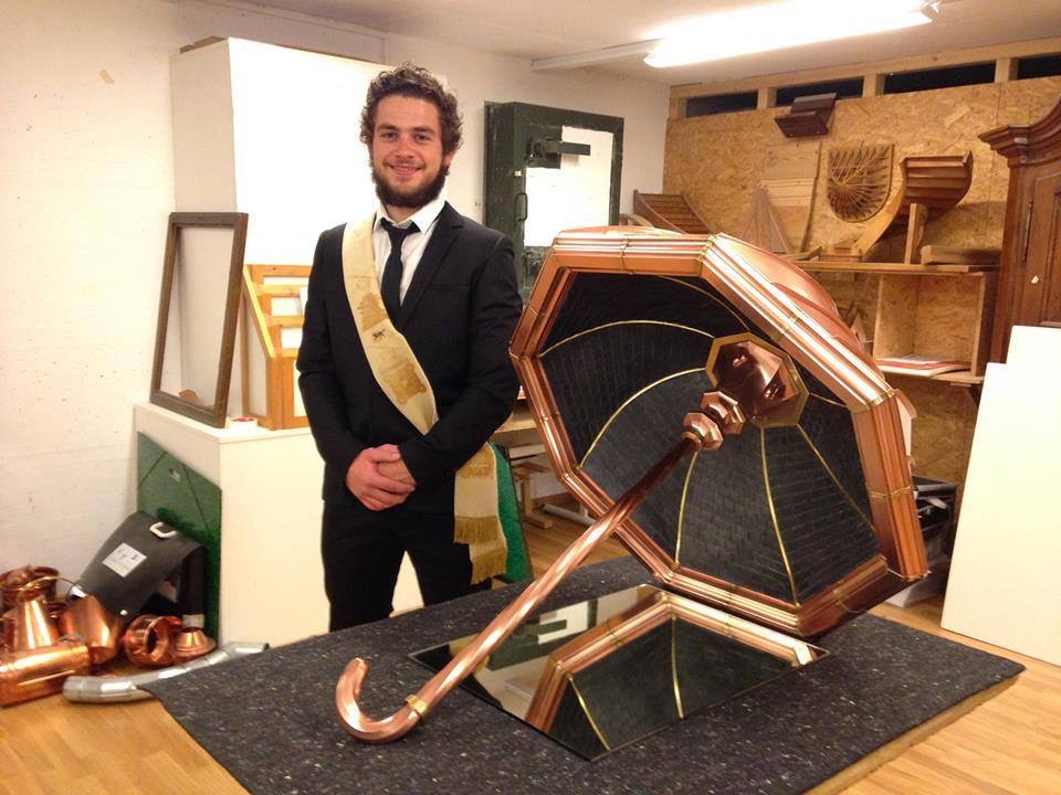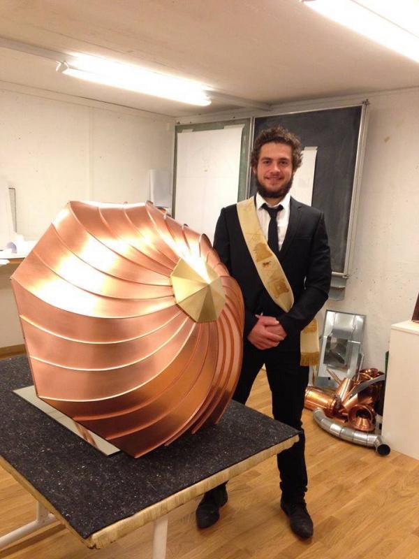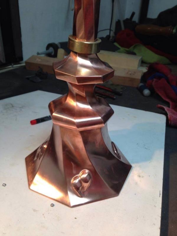 Посмотрите какой зонтик необычайной красоты, сделал зарубежный коллега. Выполнен из меди. Судя по фото, специалист еще достаточно молодой, а творит такие произведения искусства.
