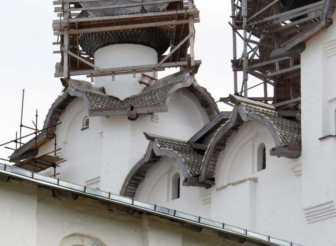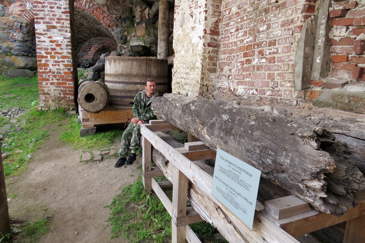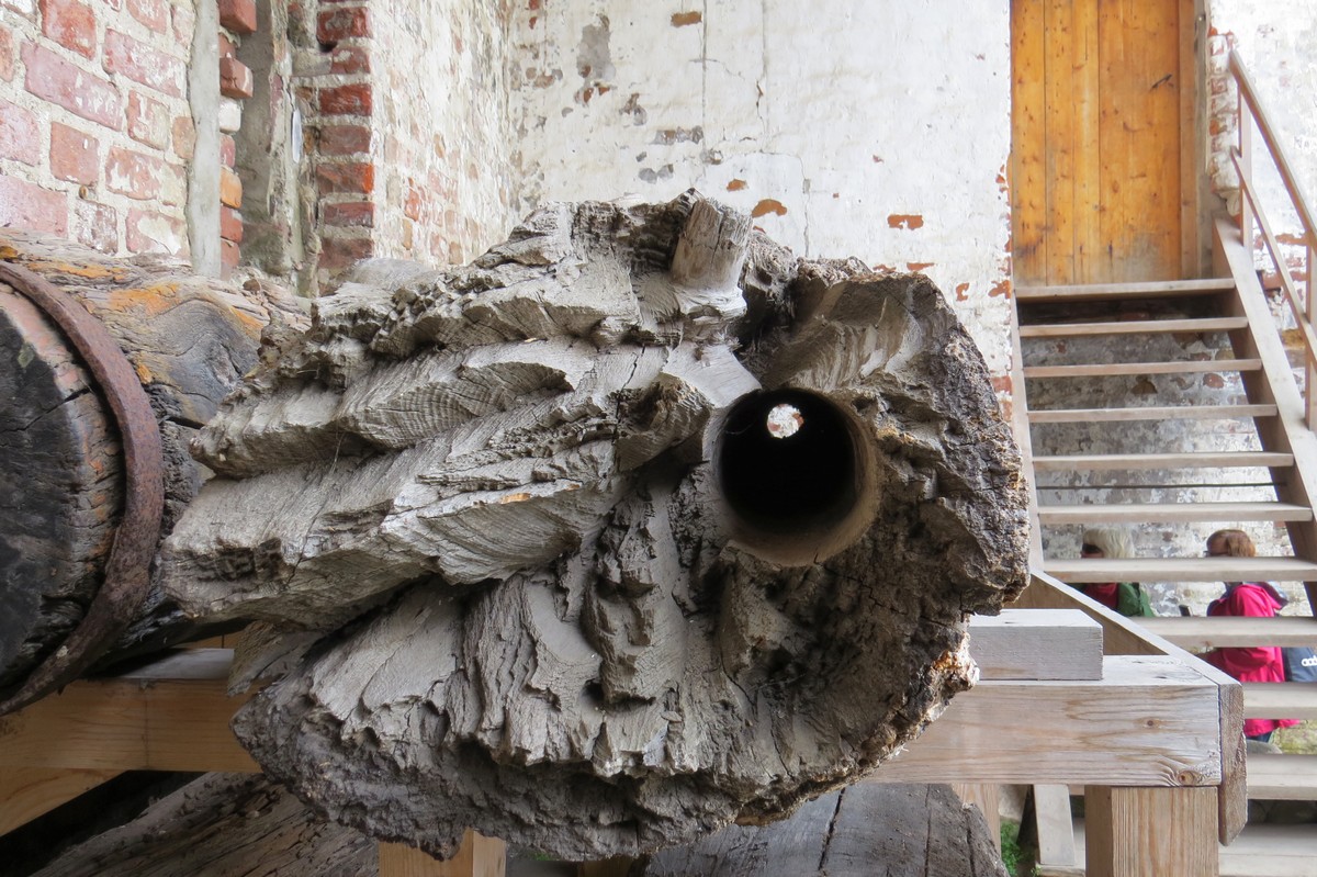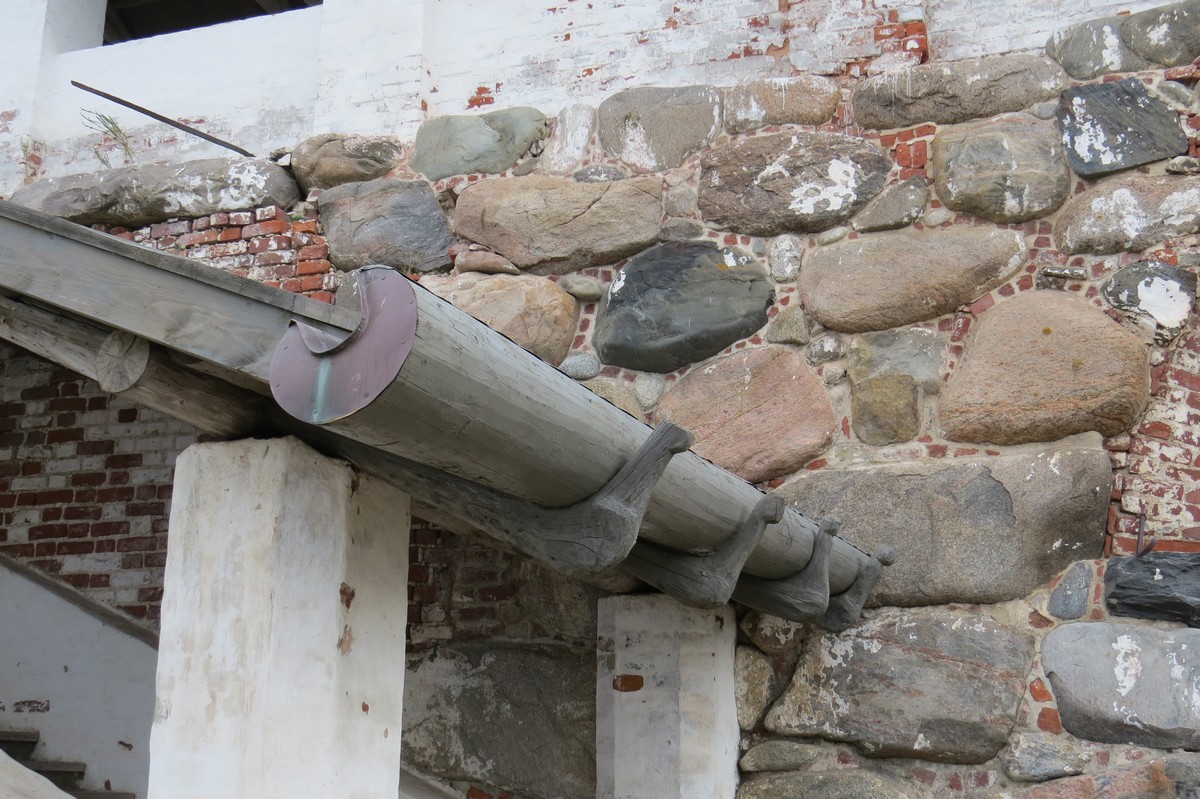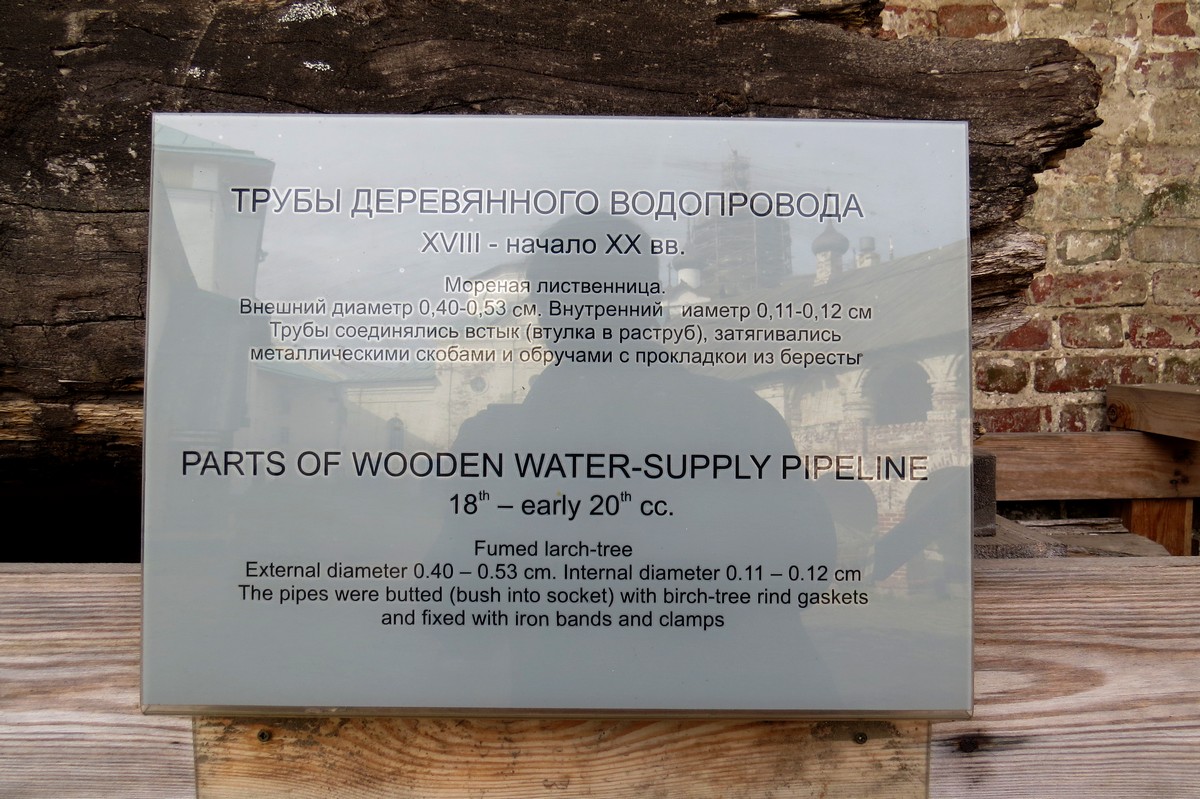 В очередной раз радуют деревянные кровли и желоба водостока, а деревянный трубопровод отдельная песня.