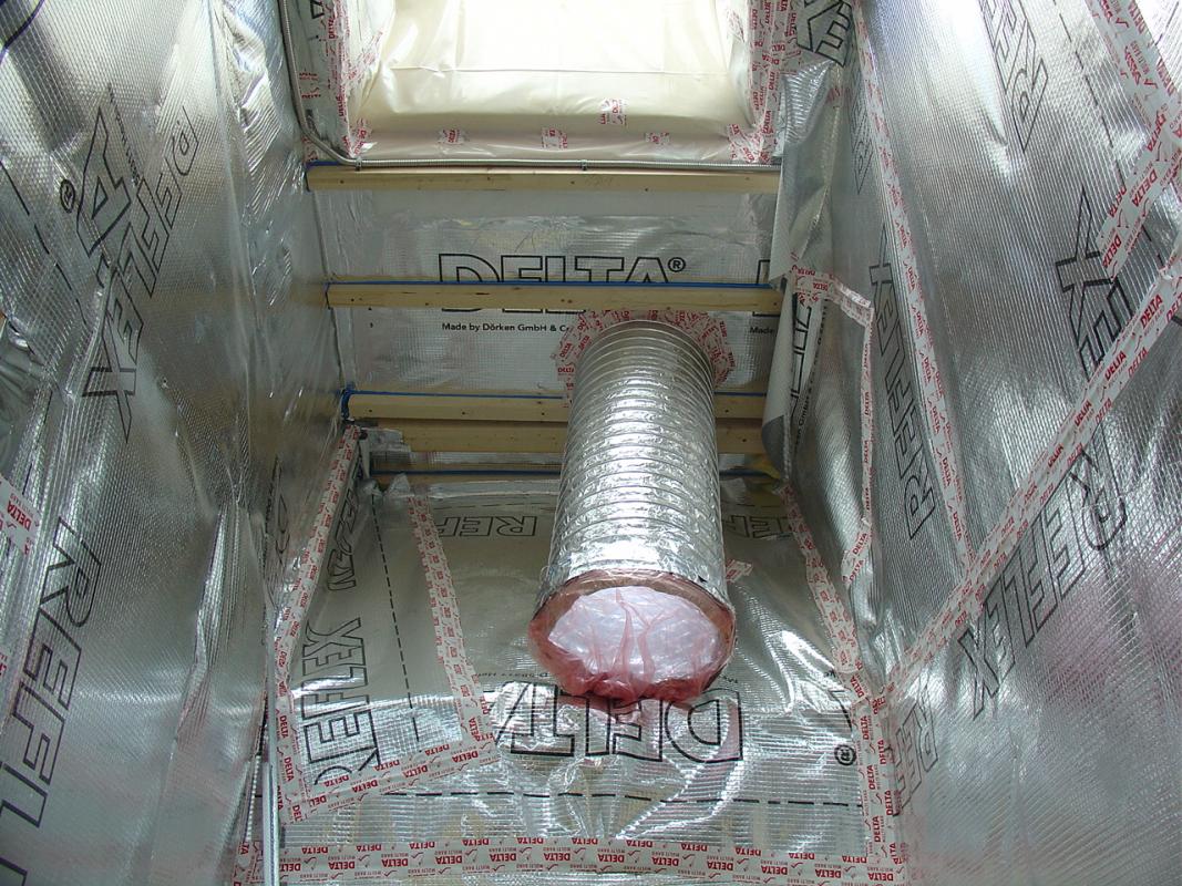 Была применена отражающая пароизоляция DELTA-REFLEX с проклейкой нахлёстов лентой DELTA-MULTI BAND