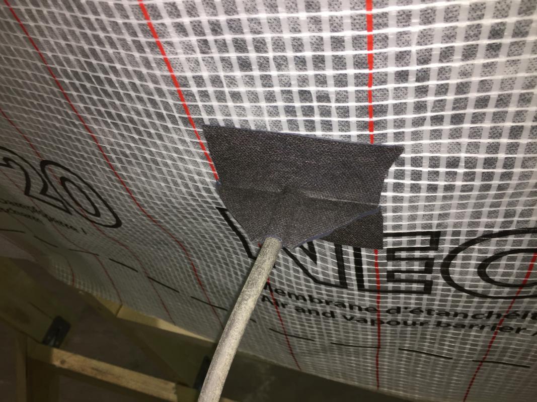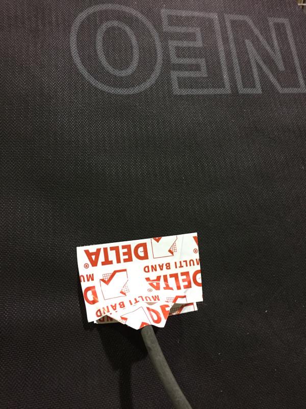На фото: уплотнение электрического кабеля при помощи DELTA-MULTI BAND на диффузионной мембране и DELTA-FLEXX BAND на пароиоляции. Не судите строго - это не постановочные фото, а результат работы участников семинара. Парни выполняли такие узлы первый раз, но справились!