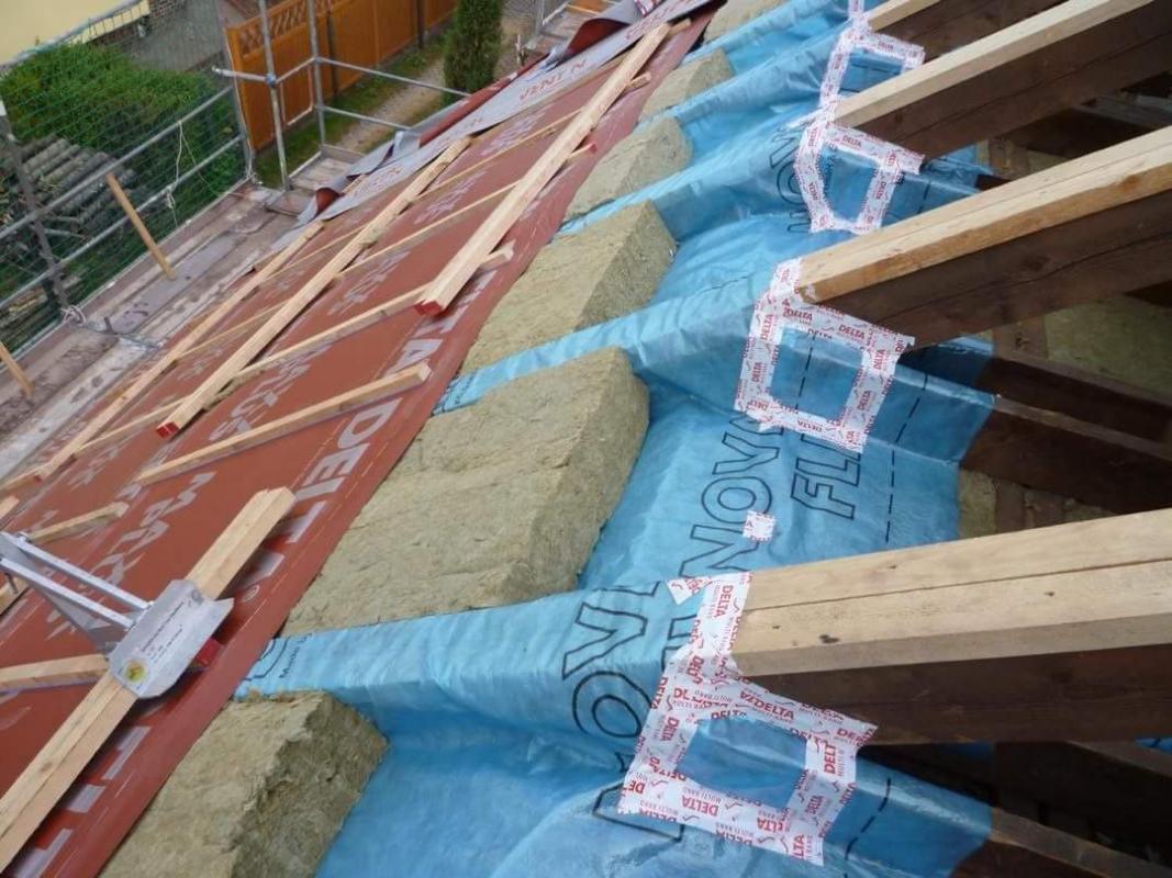 Дельта Новафлекс обладает переменным сопротивлением паропроницанию, способствуя просыханию утеплителя и стропил в тёплый период года, защите крыши от увлажнения зимой. Комфортный микроклимат обеспечивается благодаря выводу избыточного водяного пара из внутренних помещений мансарды. Адаптивная пароизоляция комбинируется с диффузионной плёнкой, уложенной на утеплитель с внешней стороны. Во время проведения работ по ремонту/санации плёнка монтируется между и поверх стропилам, огибая из с трёх сторон. Благодаря уникальной укладке и применению соединительных лент эта плёнка защищает внутреннее пространство жилища от протечек уже в ходе ремонтных работ. Прочность на растяжение увеличилась на 15%, а высокая стойкость к продавливанию и надрыву значительно снижает риск механических повреждений при проведении работ. |