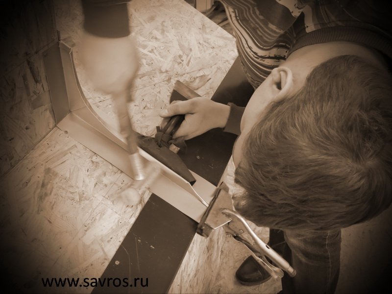 Бонусом пофальцевали кровельной нержавейкой, омедненной (ROOFINOX).