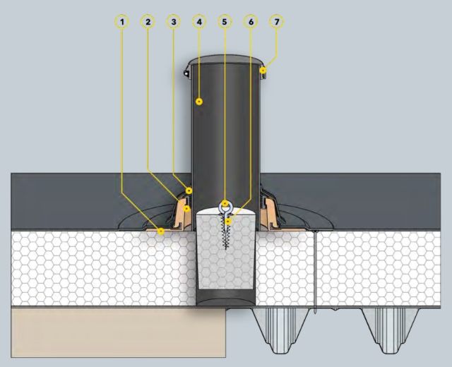 Продукт SitaVent выполнен на основе проверенного годами кровельного аэратора SitaVent с трубой из полиэтилена. Соединительный фартук надежно сварен с корпусом аэратора и обеспечивает гарантированное соединение с кровельной гидроизоляцией, исключая протечки. Отверстие трубы используется в качестве ревизионной шахты и позволяет получить доступ к круглому сердечнику из утеплителя, который хорошо захватывается и извлекается благодаря саморезу с проушиной. Этот сердечник вырезается кровельщиком в соответствии с выбранным диаметром трубы DN100 или DN 150. Если образец материала сухой, то после проверки сердечник теплоизоляции возвращается в исходное положение. При повышенных требованиях к конструкции "кровельного пирога" в ревизионной трубе также можно разместить измерительный прибор. После завершения контрольных работ ревизионная труба закрывается крышкой, которая надежно закрепляется с помощью стяжного хомута до следующей контрольно‐измерительной инспекции кровли. Область применения: