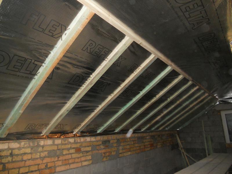2. Пирог утепления изнутри мансарды мы делаем так: парик, рейка 40х25 мм, разреженная обрешетка, 2 слоя влагостойкого гипсокартона. Фото монтажа выкладывал ранее - еще раз выкладываю!