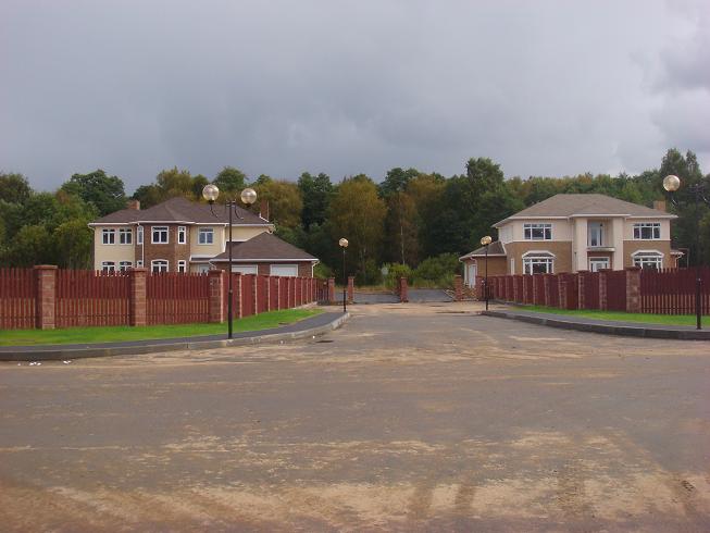 Дом еще отделывается. Над окнами выведены провода для декоративных светильников.