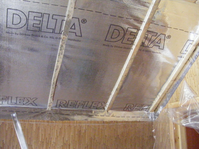 В качестве верхней пленки применяли Delta Maxx с антиеонденсатным слоем. Эта пленка со способно удерживать и после испарять за счёт диффузии до 1000 г/м2 конденсационной влаги. Так же стоить добавить, что при всех этих качествах она остается "абсолютно прозрачной" для выхода водяных паров.