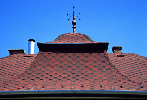 Битумная черепица выдерживает даже очень жесткие условия перемены погоды. Устойчива к УФ – излучению, полностью подготовлена к перемене времен года и температурным колебаниям. Стабильно, десятилетиями сохраняет свою гибкость и эластичность, радуя красотой и неповторимостью вашего жилища на долгие годы. Схема нанесения крепежных гвоздей устроена так, что каждый гонт черепицы в итоге прибит двумя рядами гвоздей и одновременно шапки гвоздей скрываются под лепестками черепицы. Данный вариант монтажа посилен даже для кровельщиков непрофессионалов. Но лучше не риссковать, так как демонтировать гибкую черепицу не получится, в силу того, что она склеивается между собой.