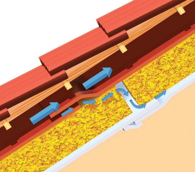 Диффузия - Х г/м2....Конвекция - Y м2 Тем не менее.... эту составляющую(конвективную) мы уже "отрубили" полной проклейкой качественной пароизоляции и её примыканий к конструкциям. Осталось убрать движение воздуха непосредственно над утеплителем, чтобы ослабить конвективный перенос тепла от утеплителя в атмосферу -недостаток двухконтурной вентиляции ( в ветреную осеннюю погоду в "тёплом" шерстяном свитере холодно, но если сверху надеть ветровку, то станет тепло). Что мы и делаем, укладывая на него (утеплитель) ДМ Цитата: